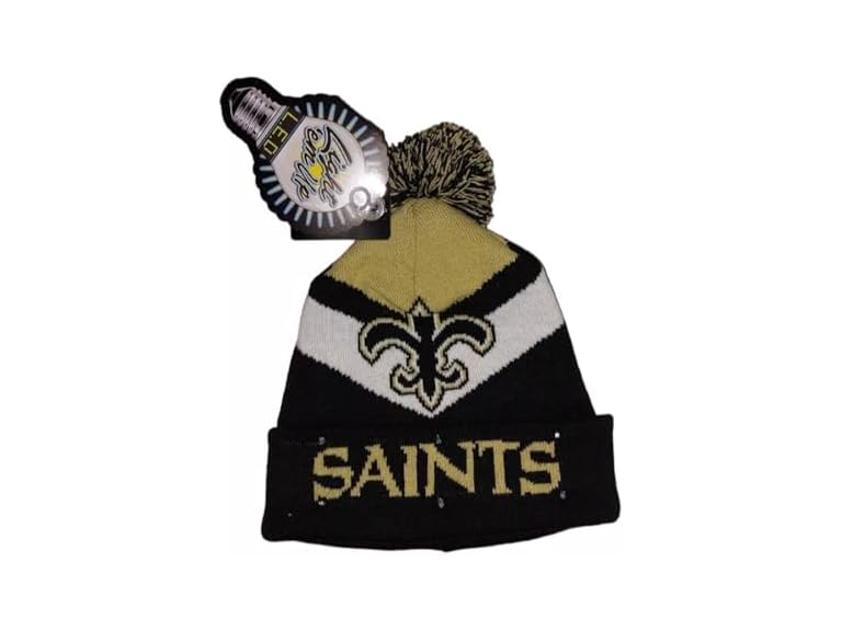- On/off switch activates blinking LED lights on brim: Brighten up the room with this New Orleans Saints beanie