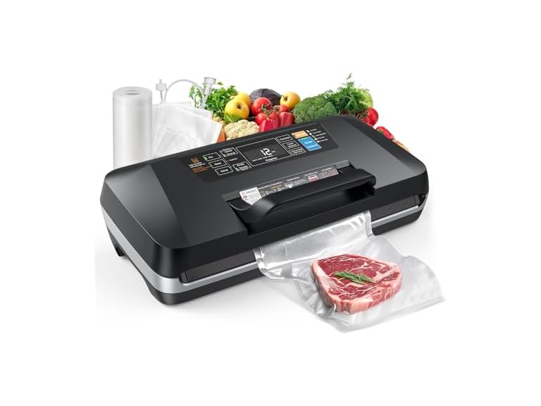 - 95Kpa Powerful Suction: The ROUUO Vacuum Sealer features a 230W high-power motor and premium heating elements, achieving a tight vacuum seal in just 8-18 seconds. This allows you to quickly and easily vacuum-seal a variety of foods, extending their freshness, saving both money and refrigerator space.