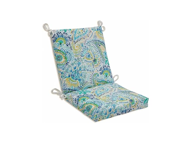 - Pillow Perfect Paisley Indoor/Outdoor Solid Back 1 Piece Square Corner Chair Cushion with Ties, Deep Seat, Weather, and Fade Resistant, 36.5" x 18", Blue/Yellow Gilford,