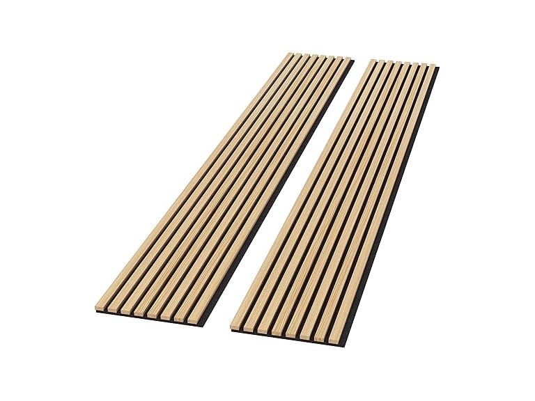- ROOMTEC 2 Pack Acoustic Solid Wood Wall Panels, 94.49” x 12.6” Soundproof Wall Panels, Wood Slat Wall Panels for Wall Decor (Oak)