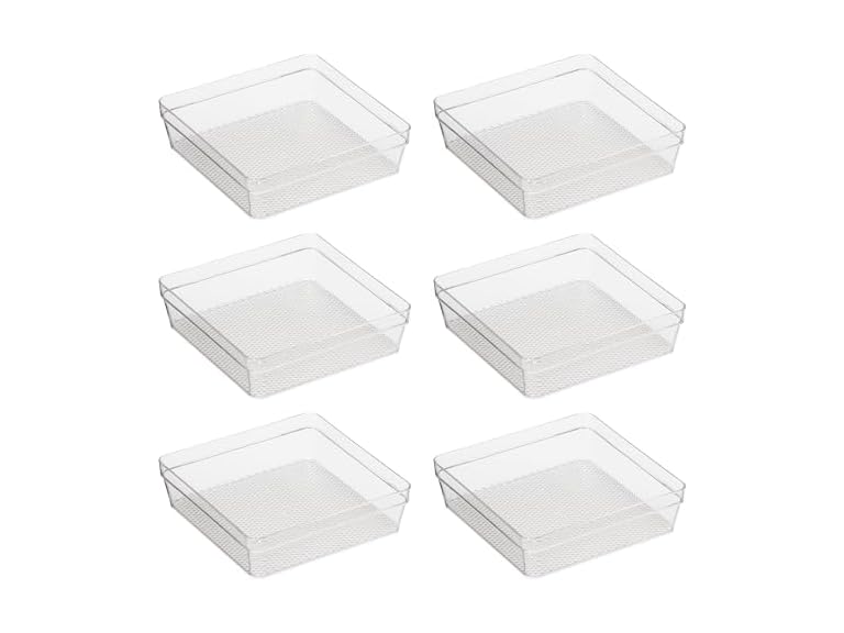 - (1) Oggi Clear Drawer Organizer - 6" X 6.25"- Ideal for Organizing Kitchen Drawers, Office, Desk, Silverware, Kitchen Utensils, Cosmetics and Bathrooms - Set of 6