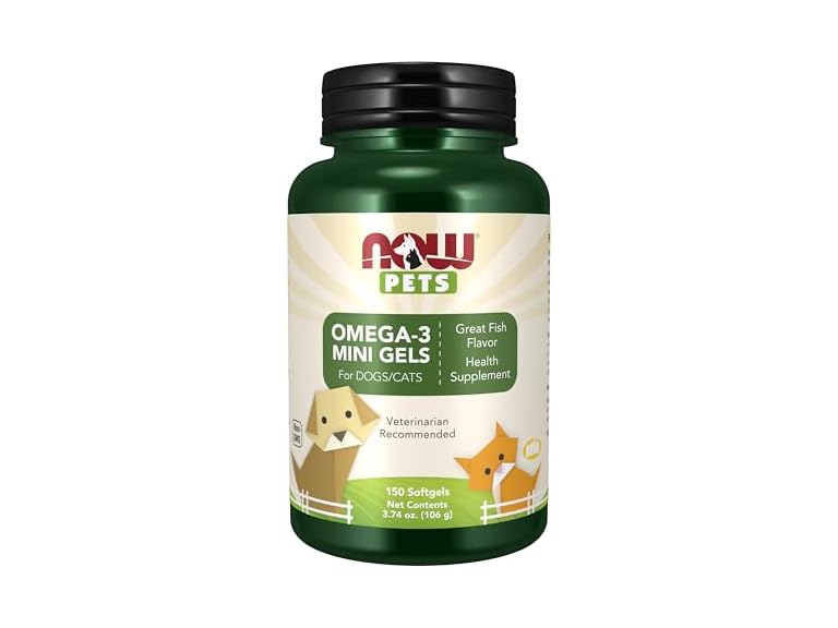 - (1) NOW Pet Health, Omega-3 Mini Gels Supplement, Formulated for Cats & Dogs, NASC Certified, 150 Softgels