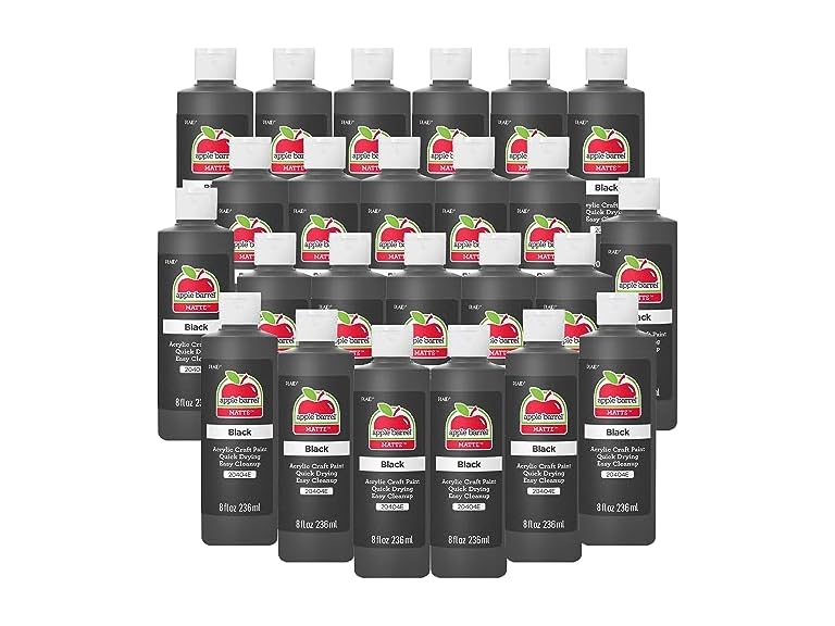 - (1) Apple Barrel Acrylic Paint in Black, Choose from: (8 Ounce), 20404EA Black- (Pack of 24), or (2 ounce) 20404EA Black- (Pack of 24)