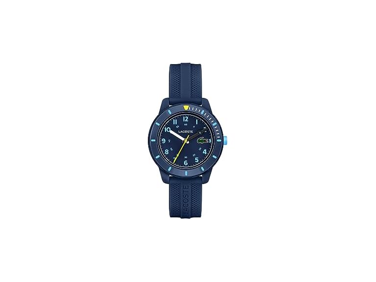 - Fun meets functionality in the Mini Tennis from Lacoste, a playful new kids timepiece with a sports-inspired rotating bezel. Arabic numerals, a minute track, and three hands in contrasting colors all aid young wearers in reading the time, while a lightweight case and embossed silicone strap ensure the watch is comfortable on the wrist. The Mini Tennis is offered in a choice of bright monochrome colorways, while bold pop color details including a contrast-color buckle pin complete the design.