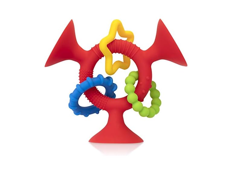 (1) Nuby Silly Three Prong Interactive Suction Toy with Colorful Rings, Red