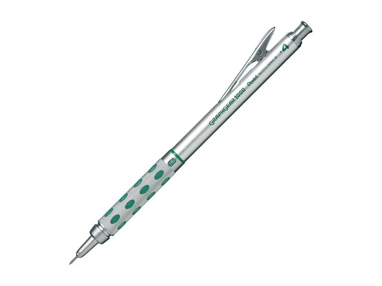 "Graph Gear 1000" is a mechanical pencil full of functions for drawing and painting. The weight is moderate, and the slim pen tip has a 4 mm guide pipe that makes it easy to see the line even when the ruler is applied. The grip is made of rubber to prevent hand slipping and knurled dual clip specifications. This hard rubber reduces hand fatigue. In addition, HB, H, B, and 2B can be used properly because the core hardness display window is attached. Furthermore, when you press the clip, the pen tip will be stowed, so you will not damage the pen tip in your pocket or bag.