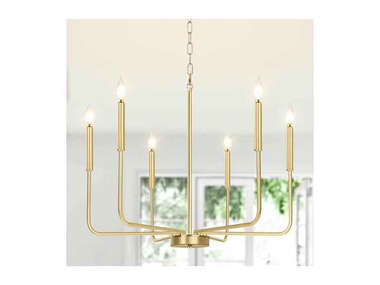 - Unique Classic Design: This farmhouse chandelier is crafted from top-quality, high-cost solid iron, and the surface is finished with satin gold. The frame features a classic vintage candle-style with 6 candle lights dotted around the armrests. Its simple and elegant design will be perfect for a variety of styles, such as modern, classic, retro, farmhouse, and industrial