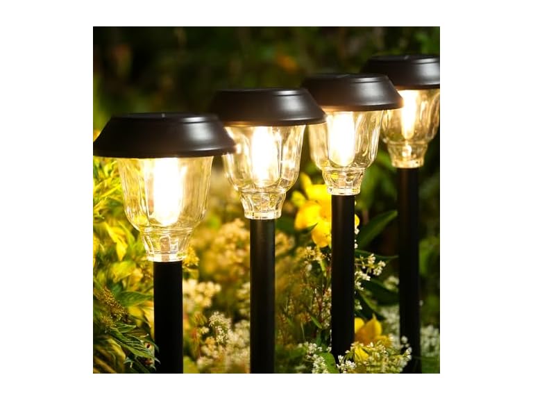 - ✔ Bright Solar Lights: Upgrated Solar Pathway Lights can decorate & illuminate garden pathway very well, make your garden look more inviting. Solar lights with heavy-duty construction and clear glass shade, ideal for any outdoor environment.