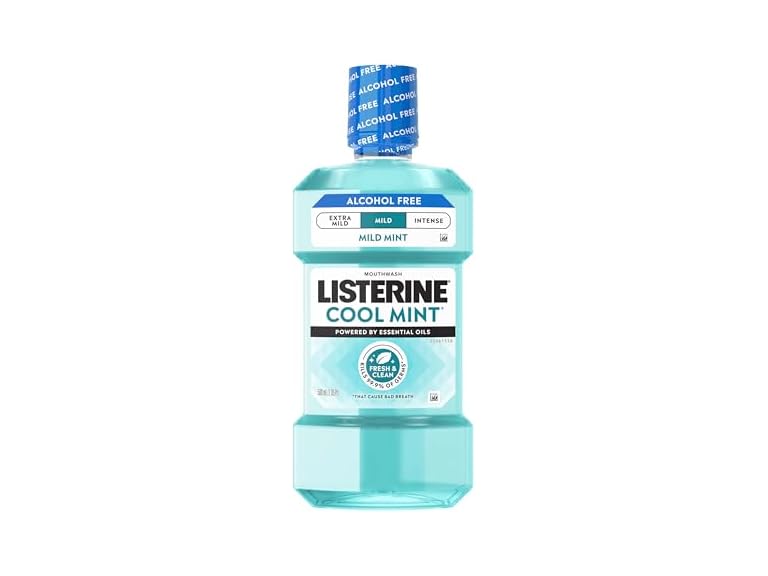 - Alcohol-free mouthwash: 500 mL bottle of Listerine Cool Mint Alcohol-Free Mild Mouthwash kills 99.9% of germs that cause bad breath & leaves your mouth feeling fresh and clean when used as part of your regular oral hygiene routine
