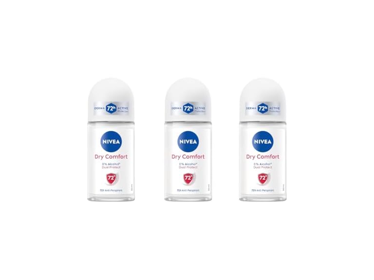 - (6-Pack) NIVEA Dry Comfort Anti-Perspirant Roll-On Deodorant 50ml, 72H | Alcohol-Free, Long-Lasting Sweat & Odor Protection, Gentle on Skin, Dermatologically Tested, Fresh Scent, All Skin Types