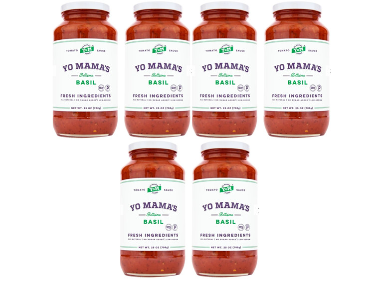 Yo Mama’s Bellisima Basil is handcrafted with garden fresh tomatoes, basil, onions, garlic, and olive oil.