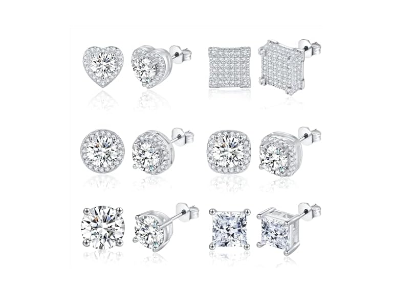 6 Pairs Sterling Silver Cubic Zirconia Studs
