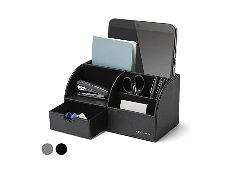 - 6-in-1 Desk Organizer - The office organizer has 6 compartments to help you organize a variety of desk accessories and supplies for the office, home and school. Reduce desktop clutter and free up space.