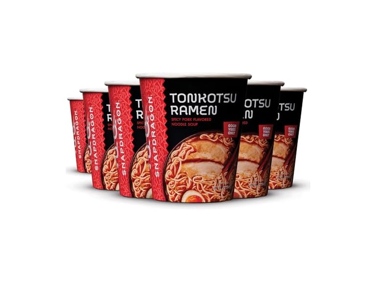 - (1) (6-Pack )Snapdragon Tonkotsu Ramen, Spicy Pork Flavored Noodle Soup Bowl, 2.2 Ounce