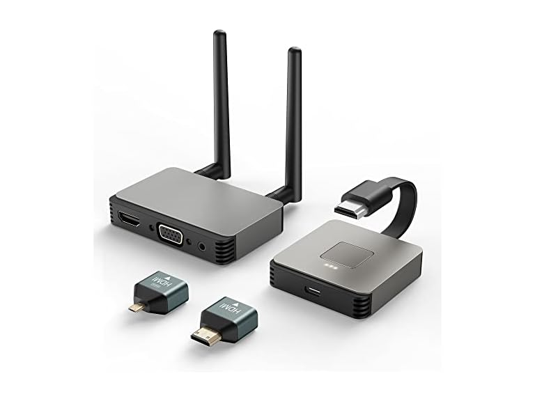 - 【Long Distance Wireless Transmit Through Wall 】:The wireless HDMI has a built-in 2.4G+5G dual-band WIFI module and is equipped with two high-performance antennas. Its transmission distance can reach 98ft/30M meters, and the delay is only 0.1 second. It can't affect your office, education, and video. It can be transmitted through partition walls, and the transmission distance of partition walls can reach about 20 meters.