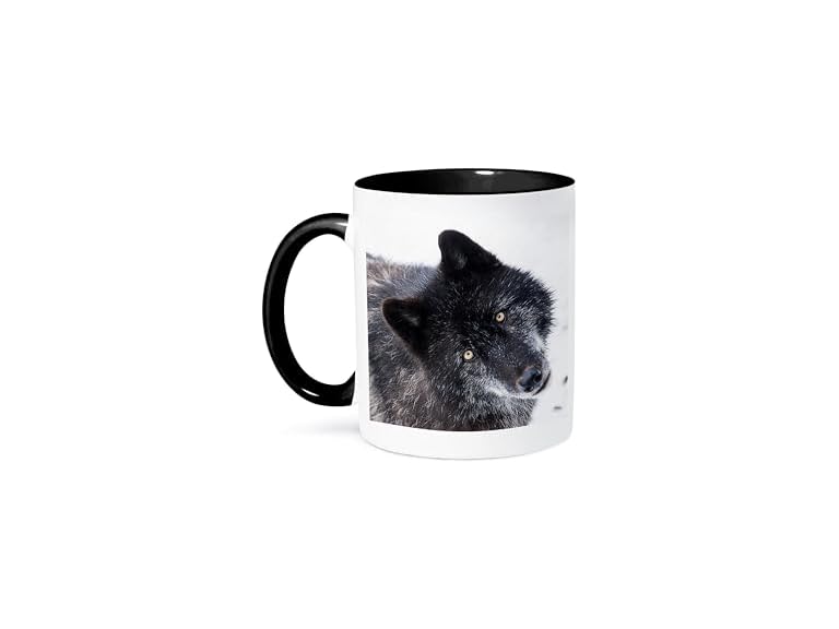 - (1) 3dRose mug_173728_4 ROCKY MOUNTAIN GRAY WOLF - Two Tone Black Mug, 11oz
