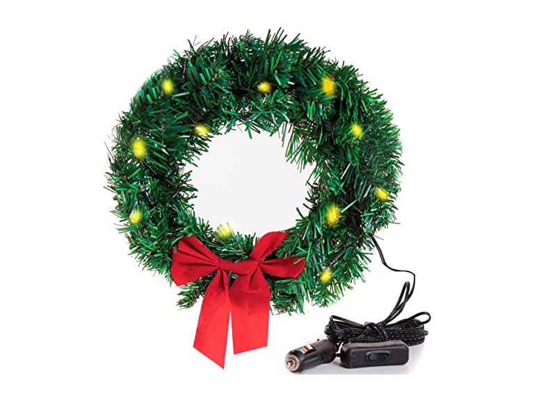 - HOLIDAY FEELS -The Zone tech Christmas Wreath is designed with artificial green leaves and exquisite red bow, hang it with your car’s grille and attracts people attention, make it stand out from other cars. Equipped with strip lights, they add style and fun. This Christmas Wreath will increase the positive and happy holiday atmosphere in your car!