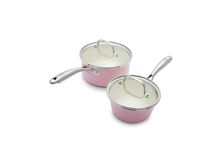 - (1) GreenLife Artisan Healthy Ceramic Nonstick, 1QT and 2QT Saucepan Pot Set with Lids