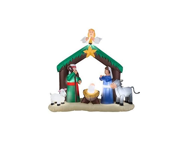 - Religious holiday decor: deck the yard with an air blown inflatable nativity scene. This outdoor inflatable celebrates the reason for the season with Mary, Joseph and baby Jesus in a barnyard scene.