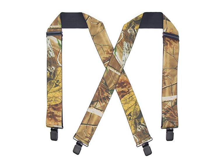 - (1) REFINEMMEE Men's Camo Suspenders with 4 Snap Hooks 2 Inch Heavy Duty X- Back Swivel Hook Brace (camouflage W4)