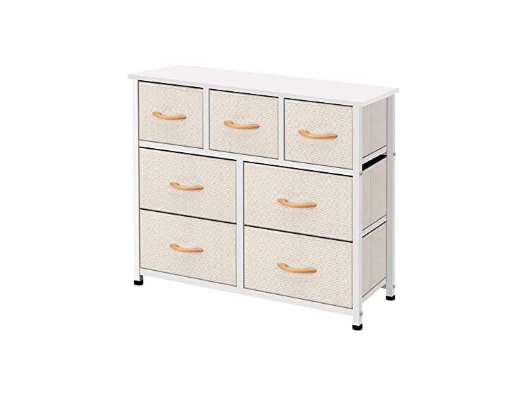 - (1) AZL1 Life Concept Storage Organizer 7-Drawer Closet Shelves, Sturdy Steel Frame Wood Top with Easy Pull Fabric Bins for Clothing, Ivory