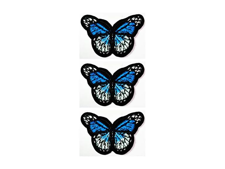 - (1) GS912 Mini Small Cartoon Patches Set 3 Pcs Mini Small Blue Butterfly Animal Cartoon Kid Iron Sew On Patch Stickers for Hat Cap Polo Backpack Clothing Jacket T-Shirt Embroidered Iron On Sew On Patch (35)