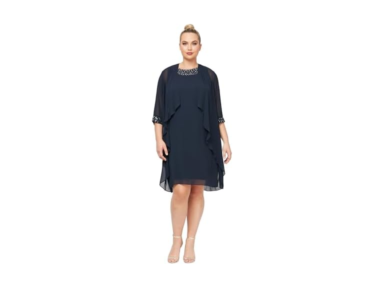 - (1) S.L. Fashions Women's Plus Size Chiffon Tier Jacket Dress with Beading Detail, Deep Navy, 14W