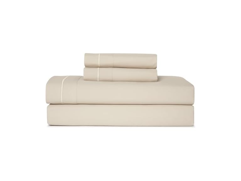 - (1) CASUAL LIVING Queen Sheets Set 4 Piece Cooling Sheets with 2 Pillowcases Soft Microfiber Hypoallergenic Washable Bed Set Deep Pocket Lightweight Bedding Elasticized for Bedroom, Queen, Beige