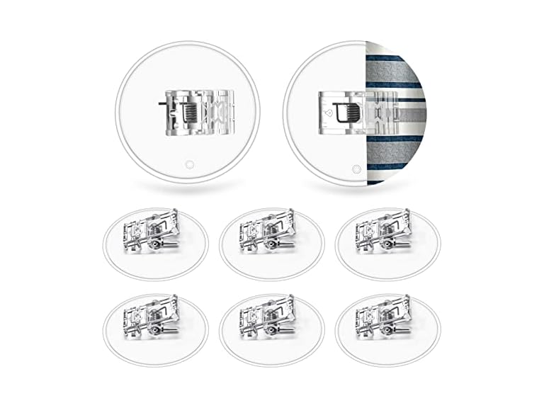 - Easy Installation: The base diameter is only 2 inches. It is not difficult for you to find a flat place of similar size on the walls. Clear it after you decide where the clips should stay. Then tear off the double-sided tape and stick it. Press each plane to make it more firm That's it. No drilling, No Dirty.