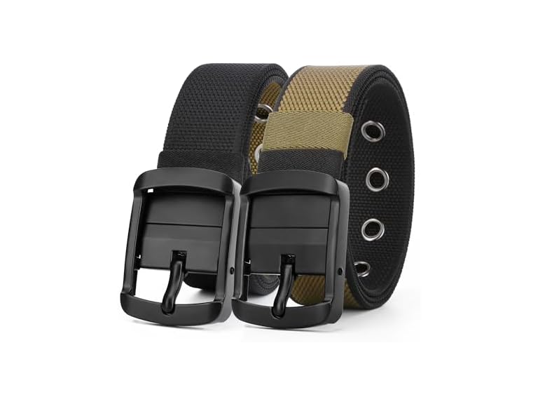 - (1) MILORDE Men's Reversible Nylon Web, 35MM, Dressy Casual Work Belt with Automatic Buckle Quick Release, Full Adjustable (30"-34" Khaki/Black,100)