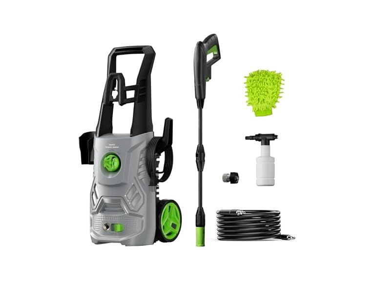 - Water Saving and Durability: High pressure washer is currently recognised as the most scientific and environmentally friendly way of cleaning, reducing water waste and removing dirt accurately, designed with TSS, the pump will automatically stop when the trigger is not activated, which saves energy and prolongs the service life of the pump and the motor and the handle is designed with a child safety lock to prevent accidental contact!
