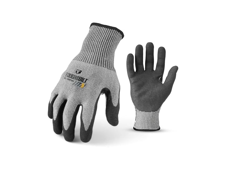 - FUNCTIONAL DESIGN: Textured sandy finish delivers a secure grip in oily, wet, or dry conditions. Reinforced thumb saddle enhances protection, while ANSI/ISEA 105-2016 Cut Level A5 rating provides reliable defense against cut hazards.