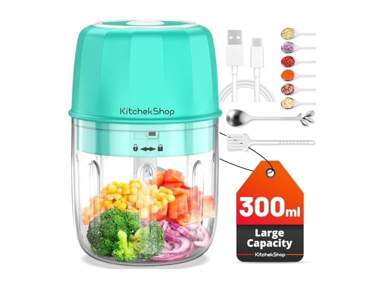 - MULTI-PURPOSE MINCER: Handy small size 3*5.5''. The size is small, but its capacity is an upgraded 350 ml, which is enough for most of the time seasoning and spice preparation. Use this Kitchekshop food grinder to quickly and easily complete any small job, chop onions, garlic, nuts, meat, salads, nutritional products, cheese, make baby food purees, and more