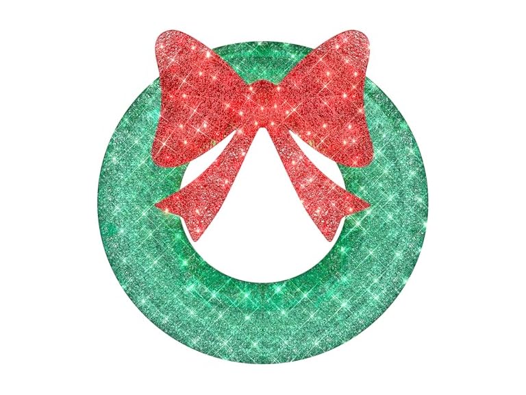 - (1) 36 Inch Outdoor Christmas Wreath with 138 Lights & Red Bow, LED