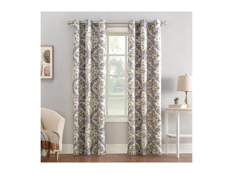 - (1) Sun Zero Regina Floral Watercolor Energy Efficient Grommet Curtain Panel, 40" x 84", Gray
