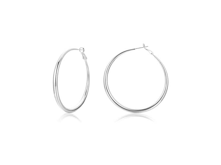 - (1) Cocadant Sterling Silver post 60mm Big Hoop Earrings for Women,Hypoallergenic Chunky Silver Hoops Lightweight Large with Graduated Curvature Hoop Earrings