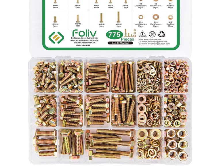 - FOLIV 775PCS Grade 8.8 M6 M8 M10 Bolts and Nuts Assortment Kit