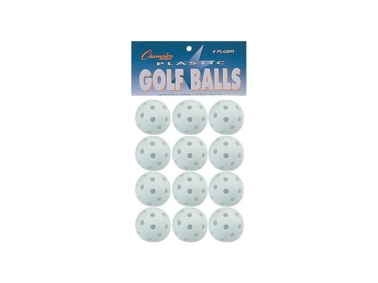 - (1) Champion Sports Plastic Golf Balls for Golf Practice, 12 Pack, White - Durable, Hollow Golf Wiffle Ball Set for Kids, Beginners - Lightweight Golf Ball with Limited Flight - Premium Golf Equipment