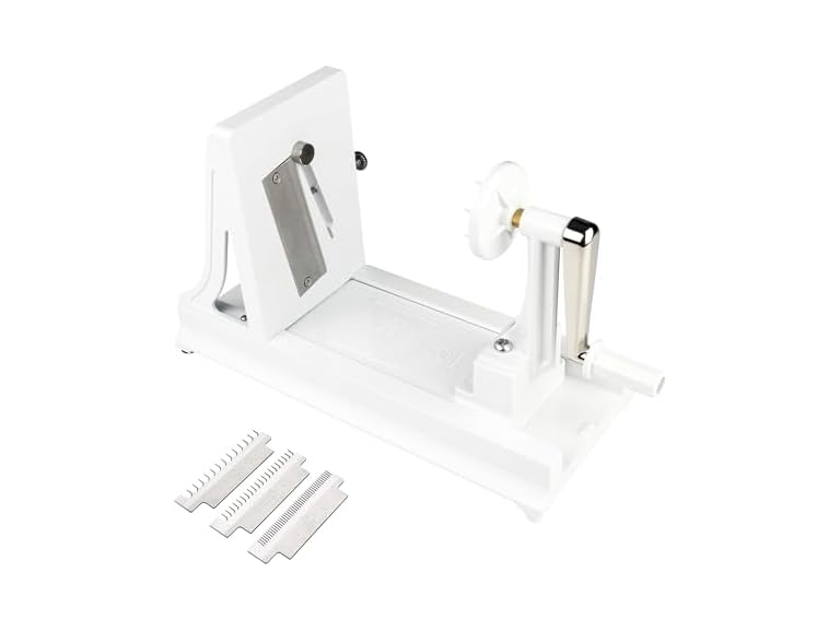 - Very easy to use, simple turn of the handle gives a very professional looking spiral cut