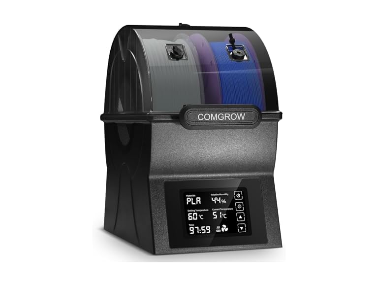 - Filament Dryer Box for 2 Spools: Each filament dryer box is equipped with 2 filament holes which allow PTFE pipes through. The newly designed filament hole position is convenient for 3D printers with different extruder positions on the market. Large capacity of drying 2 rolls of 1KG filament at the same time meets the needs of users to dry a wide range of filaments and two printers at the same time, saving space and time.
