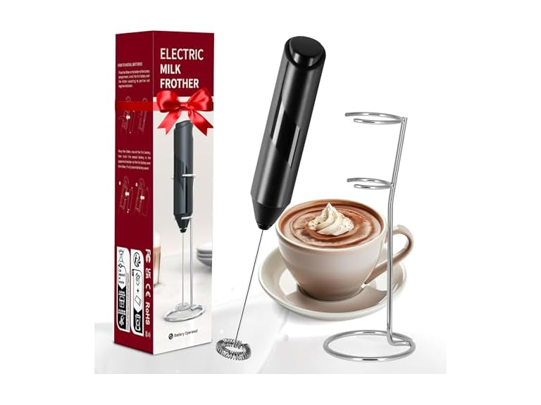 - (1) YSSOA Electric Milk Frother Handheld with Stainless Steel Stand Battery Operated Whisk Drink Mixer for Coffee, Frappe, Latte, Matcha, Black (Handheld, Black)