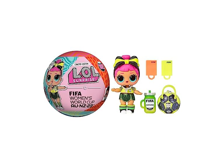 GOOOAAALLL!! Introducing L.O.L. Surprise X FIFA Women's World Cup Australia & New Zealand 2023 dolls! It’s gametime, so build your dream team and SCORE some outrageous surprises with these Limited-Edition tots! Find 6 World Cup-themed dolls to complete the squad. Chase down your supporting team’s doll and have a fan-tastic time watching the 2023 FIFA Women’s World Cup! Find fierce soccer-themed surprises, including fashions, bottle, accessories, and an exclusive trading card in each ball. Feed or bathe your doll for a water surprise! Will your doll cry, spit, or tinkle? Or will it color change in cold water? Each L.O.L. Surprise! X FIFA Women's World Cup Australia & New Zealand 2023 doll comes with (1) Limited Edition doll, (2) Outfit, (3) Shoes, (4) Bottle, (5) Accessory, (6) Accessory, (7) Exclusive Trading Card. LOL Surprise collectible dolls with stylish hair, fun to dress outfits and many detailed accessory pieces make a perfect toy and playset for kids including 4- to 7-year-olds and up girls and boys for imaginative pretend play! As birthday gifts and gift for any special occasion, dolls provide hours of social play with siblings and friends! From MGA Entertainment, creators of LOL Surprise fashion and collectible dolls, Rainbow High fashion dolls, Na Na Na Surprise dolls, Bratz fashion dolls, MGA's Dream Ella fashion dolls, MGA's Glitter Babyz baby dolls, Lalaloopsy, Poopsie Surprise girls dolls, Baby Born Surprise Baby Dolls and Collectibles, Little Tikes kids toys and many other favorite brands.
