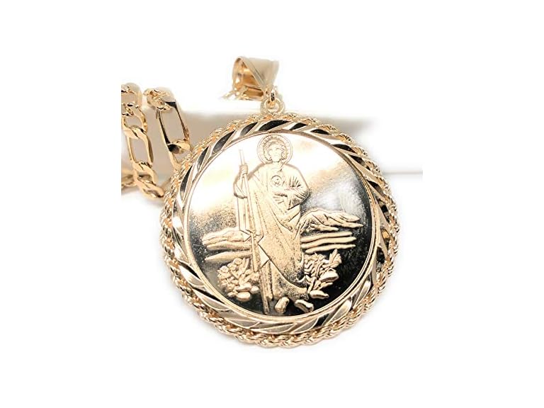 - (1) Fran & Co. Saint Jude Pendant Necklace Figaro 26"Saint Jude Pendant Necklace Figaro 26" San Judas Tadeo Virgen Centenario Medalla Oro Laminado