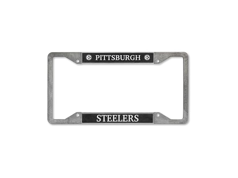 - Pittsburgh Steelers Fans! A Fan Favorite 12" x 6" Car/Truck Frame - This auto accessory is perfect for the casual and everyday fan. The antique pewter finish gives it an old-fashioned feel. Whether it is game day at the stadium or a home game with friends, this license plate frame will be the highlight of the drive.