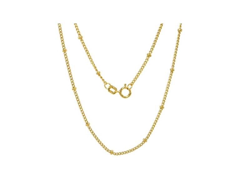- ◆ Non tarnish 14kt yellow gold diamond cut gold chain necklace measures 1.3mm secures with a lobster clasp. Bead Size 1.85mm. Available in 14, 16, 18, 20, 22, 24 inch