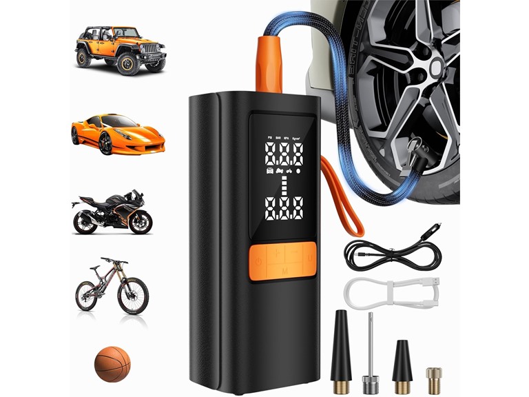 - 【Safe and easy automatic shutdown】Connect the air nozzle and press the ""Start"" button - the wireless tire pump automatically inflates to a preset pressure, then automatically shuts off to prevent overinflation, keep the tire safe and free up your hands for other tasks.