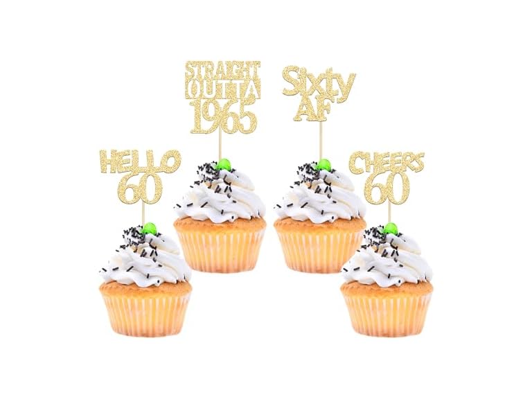 - (1) Gyufise 24Pcs Gold Glitter Straight Outta 1965 Birthday Cupcake TopCupcake Toppers 60thpers Hello 60 Sixty Cake Picks Decorations for 60th Birthday Anniversary Retirement Party
