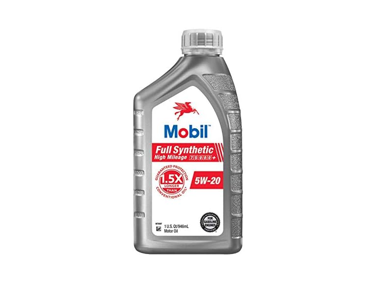 Guaranteed protection for 1.5x longer than conventional oil (Guaranteed protection for 7500 miles between oil changes compared to a guarantee of 5000 miles or less on Mobil branded conventional and synthetic blend motor oils). High mileage 75000+. For gasoline engines. American petroleum institute certified. Designed to protect higher mileage engines. Outperforms conventional oil. Helps extend engine life. Mobil full synthetic high mileage motor oil outperforms conventional motor oil and has been tested and proven to provide long lasting engine protection to help extend engine life. Recommended by ExxonMobil for use in the following applications: Ford-WSS M2C930-A; Chryster MS-6395. SAE-5W-20: API service SN; resource conserving SN plus. American Petroleum Institute Certified. Meets or exceeds the requirements of: ILSAC GF-5; API SN PLUS, SN, SM, SL; Ford WSS-M2C947-A; Ford WSS-M2C947-B1. UL validated. mobil.com. Scan for more product information. Questions or comments? Call 1-800-Ask Mobil or visit us at mobil.com. This bottle contains recycled plastic. For oil recycling information visit Earth911.com or call 1-800-Cleanup. Don't Pollute: Conserve resources. Returned oil to collection centers. Made in the USA from domestic and/or imported components.