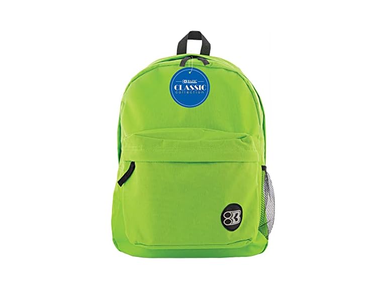 - (1) BAZIC School Backpack 17" Lime, Lightweight School Bag Padded Back & Adjustable Strap for Students, Travel Bag Fit A4 Notebook, 1-Pack