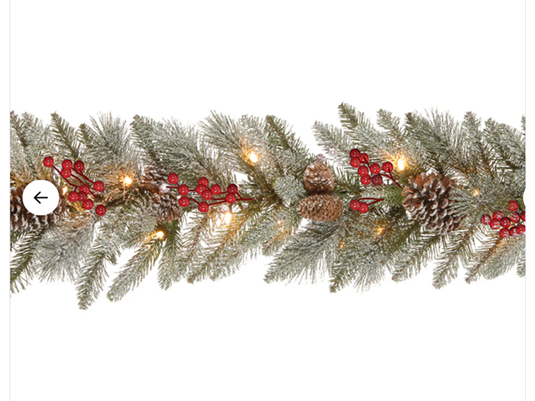 This Snowy Bristle Berry garland features Feel Real branch tip technology, creating a decoration with remarkable realism. These crush-resistant branch tips are molded from real tree branches for an authentic appearance. This mixed evergreen tip garland has snow-dusted tips and is trimmed with red berries and pine cones. It is pre-lit with 50 clear lights that remain lit even if a bulb burns out. This garland can be displayed over doors, windows, fireplace mantels, fence, or stairway railings in indoor or covered outdoor locations.